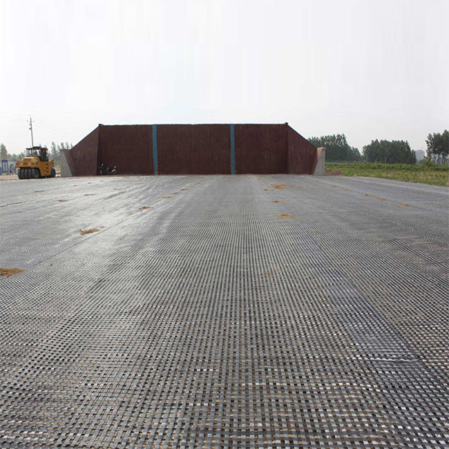 low;the steel plastic complex geogrid to lay down,joining ,the